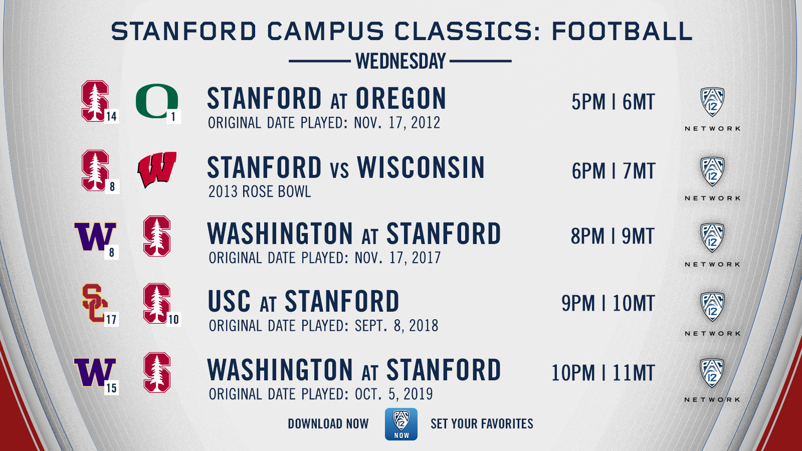 . With the Pac-12 Now app, fans can set favorites and alerts for their Pac-12 teams to stay up to date and ready for the return to play. The Pac-12 Now app is also available to subscribers via